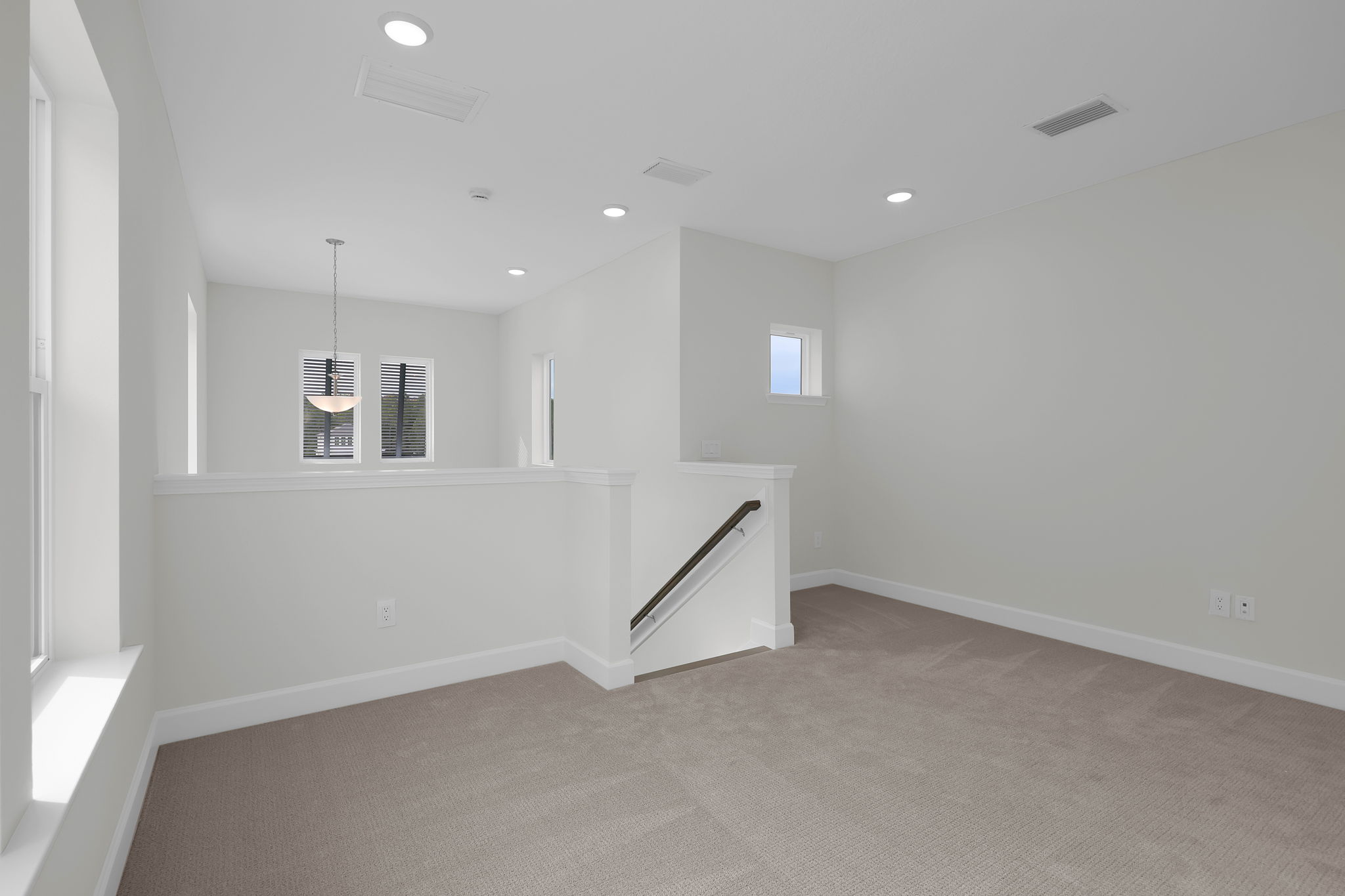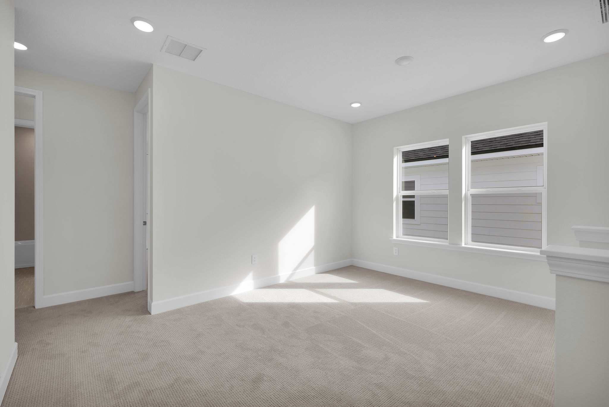 Upstairs, three secondary bedrooms surround a central loft—ideal for movie nights or play. Additional upgrades include 10’ ceilings downstairs, 8’ interior doors on both levels, and pocket doors in the owner's bath.